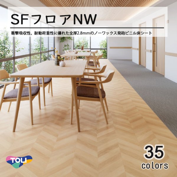 東リ 発泡複層ビニル床シート SFフロアNW(10cm単位での販売) 1820mm(厚2.8mm)衝撃吸収性・耐動荷重性に優れた全厚2.8mmのノーワックス発泡ビニル床シート。 [28sf]