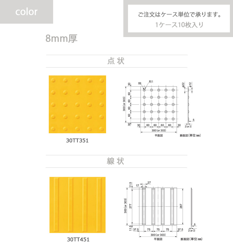 東リ SGタイル(視覚障がい者誘導用)単層ビニル床タイルTT 全厚8mm 300mm×300mm [戻る]