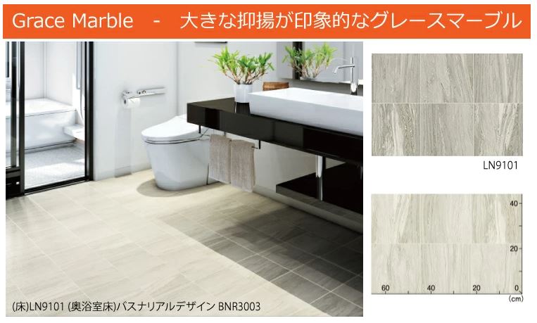 東リ 「ラバナ」ビニル系床材 床シート (1m以上10cm単位での販売) 1820mm(厚3.5mm)洗面・トイレ付き浴室などの水廻り部位に最適な機能と意匠を兼ね備えた床材です。