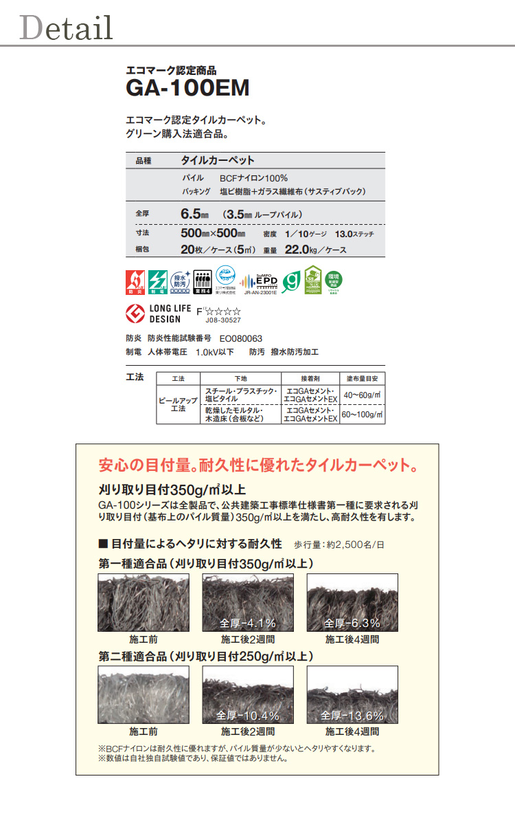 東リ GA100EM 50cm×50cm<br>エコマーク認定商品 撥水・撥油・防炎・制電・防汚<br>★送料無料(北海道、沖縄県、離島は除きます) [戻る]