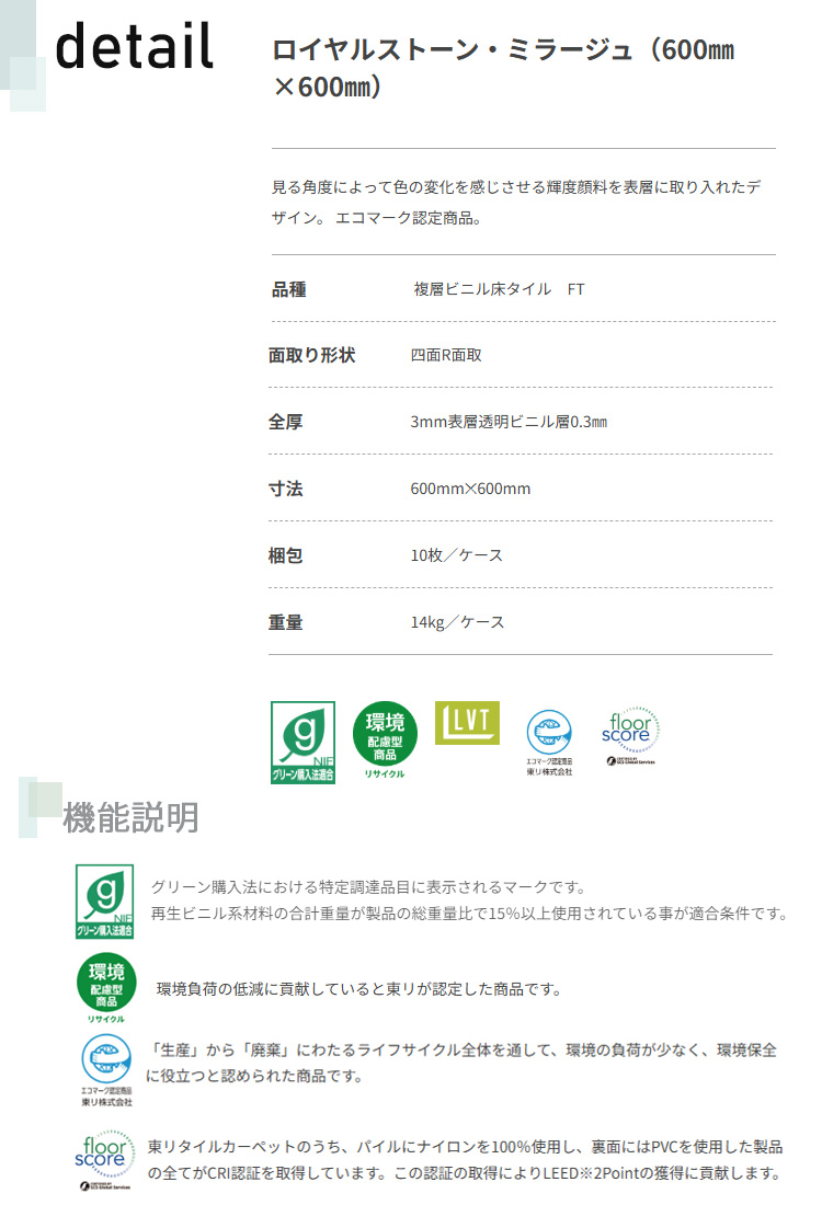 東リ ロイヤルストーン・ミラージュ(60mm×600mm)10枚/ケース<br>見る角度によって色の変化を感じさせる輝度顔料を表層に取り入れたデザイン。 エコマーク認定商品。