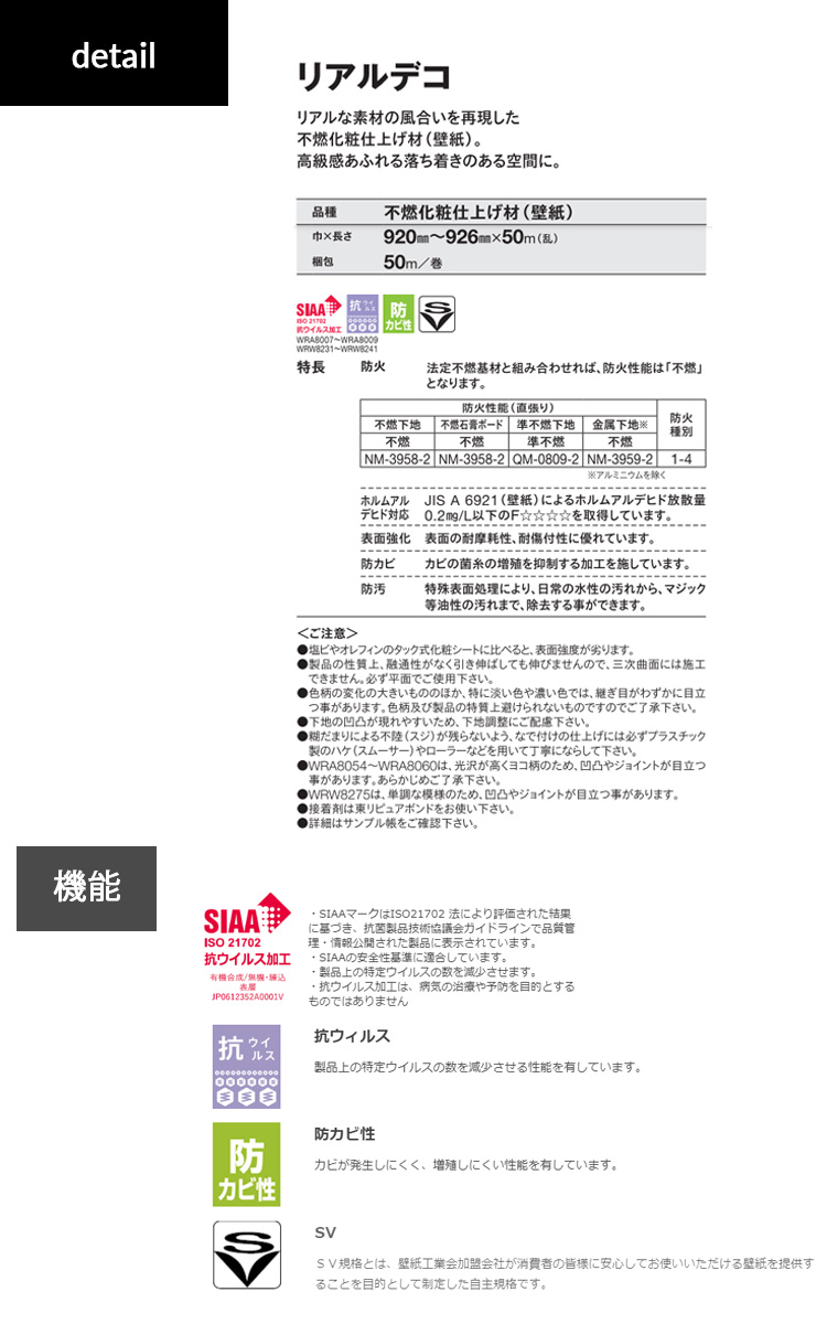 リアルな素材の風合いを再現した、不燃化粧仕上げ材。 [wra]