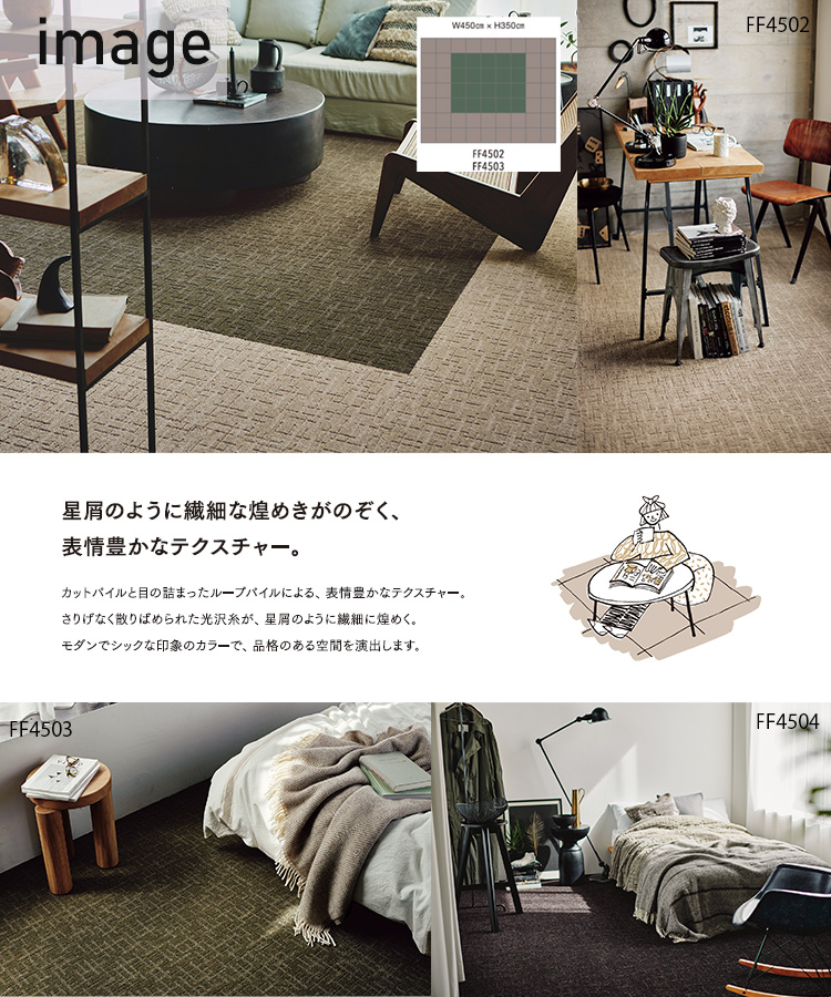 【送料無料】東リ 洗える 横ズレしない 置くだけ ずれない ペット対応 タイルカーペット ファブリックフロア スクエア4500 FF4500 ステラクロス 50cm×50cm 防汚 防ダニ 床暖 手洗いOK 消臭 日本製 [ff4500]