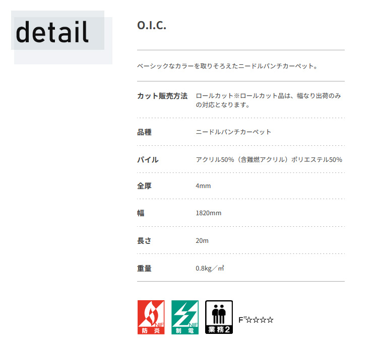 東リ O.I.C. パンチカーペット(1m単位での販売) 1820mm(厚4mm)