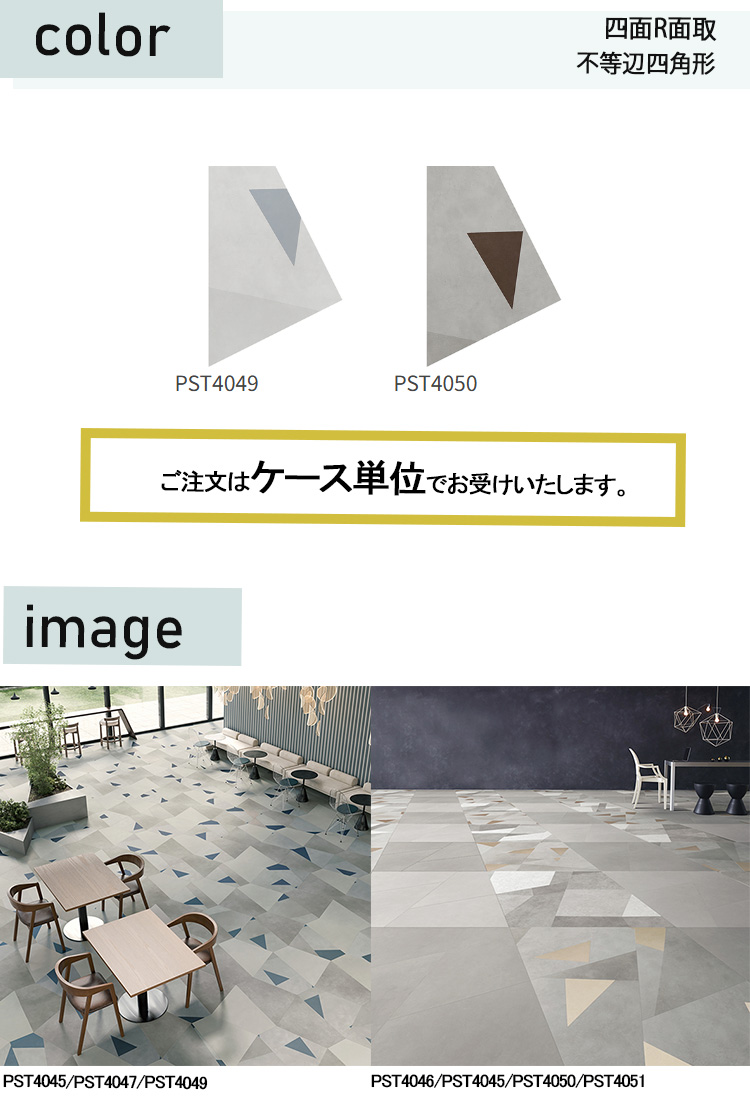 独自のサイズにより、貼り方を変えるだけで様々な印象のフロアデザインが可能な石目柄プリントタイル。エコマーク認定商品。 [PST_m_tetra]