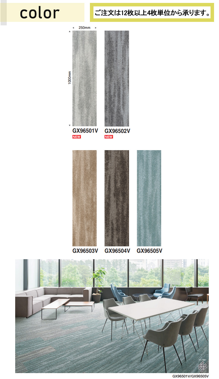東リ ディフアブリエ2 タイルカーペット GX-96500V 25cm×100cm 12枚/ケース