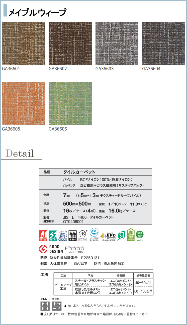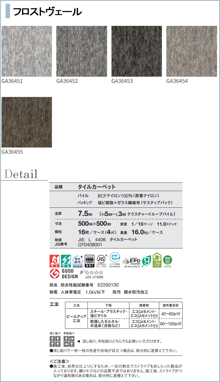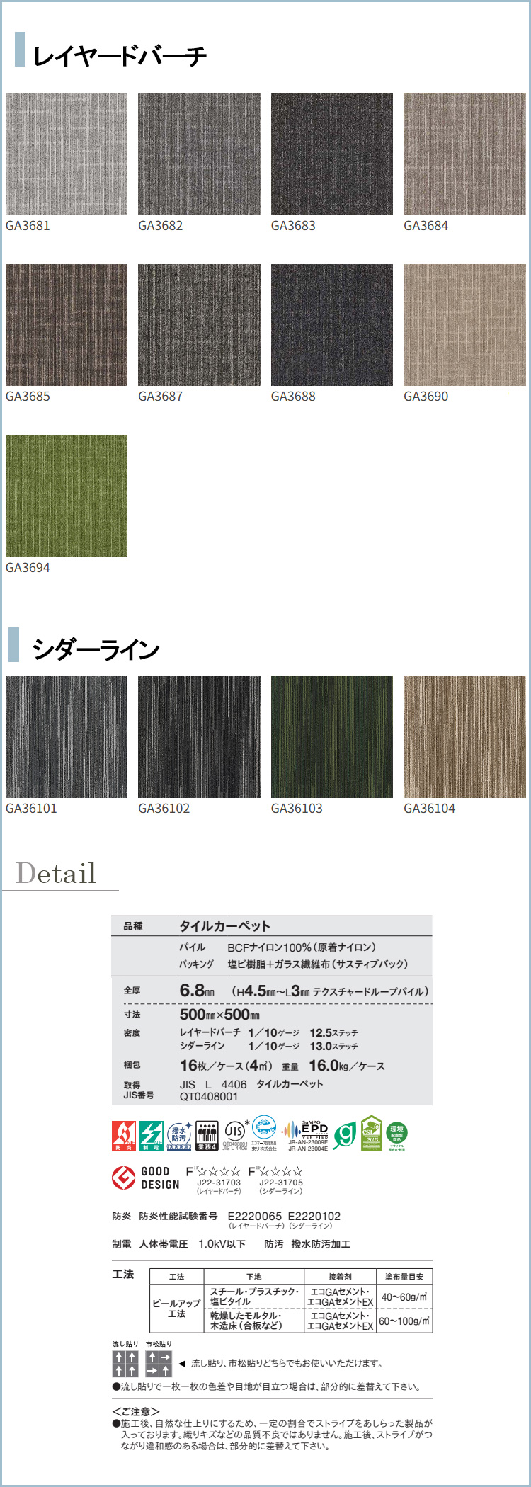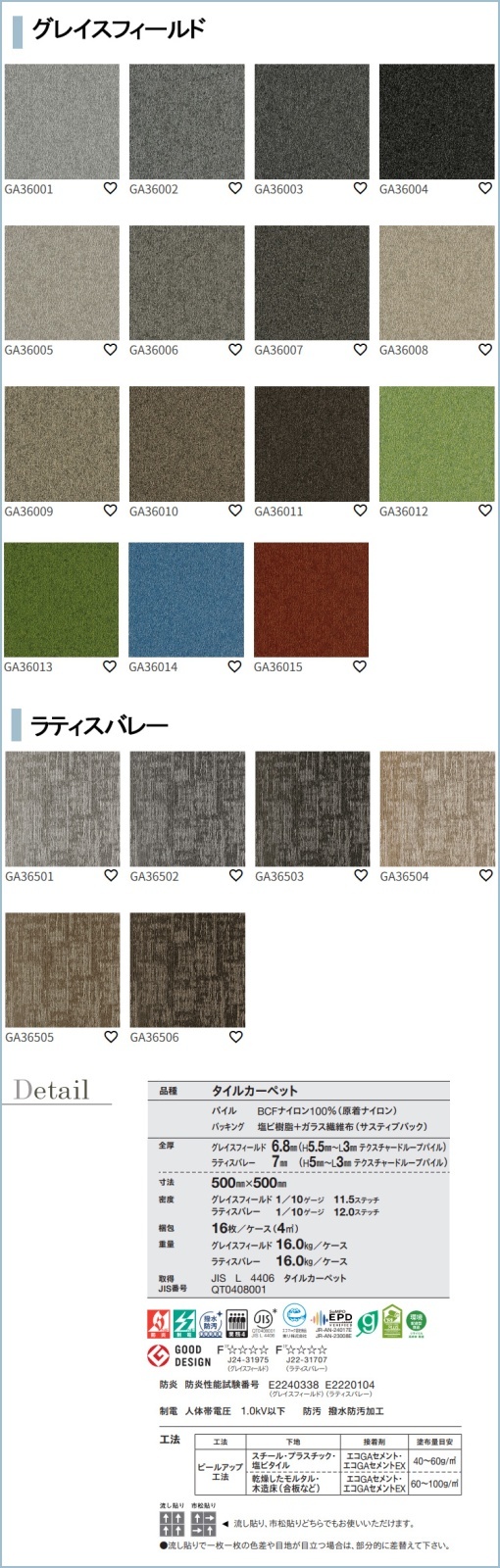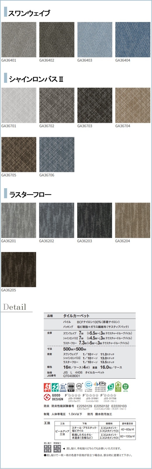 GA3600 東リ タイルカーペット GA3600 サスティブバック 50cm×50cm ★送料無料(北海道、沖縄県、離島は除きます)防炎・制電・撥水防汚・エコマーク