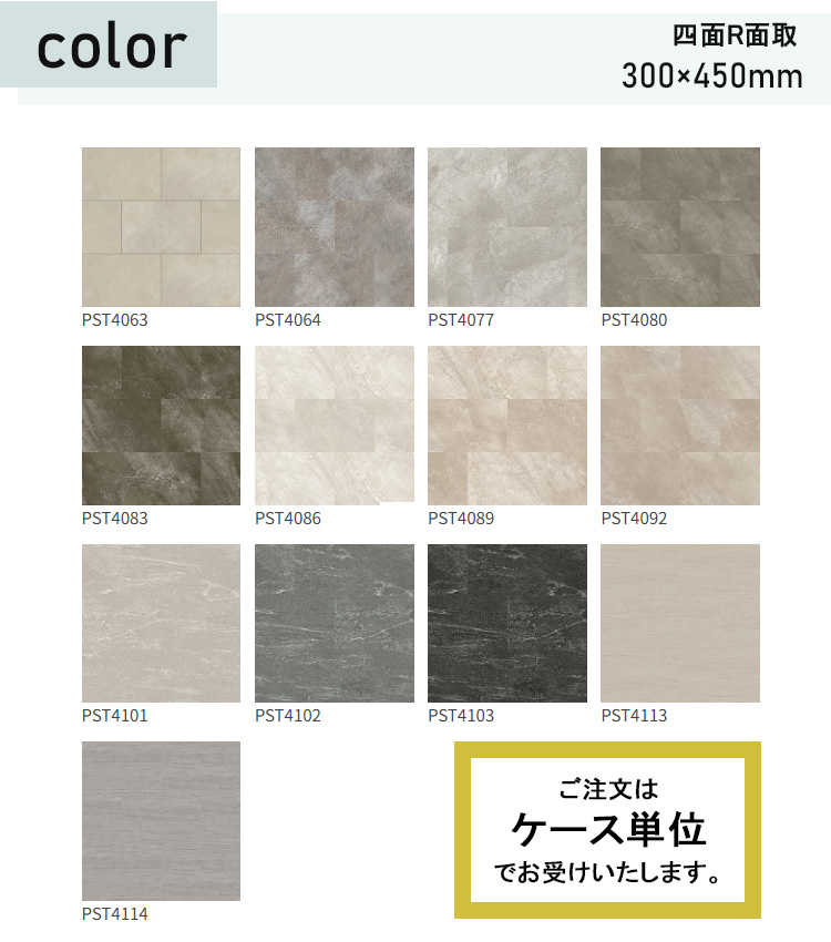 色柄サイズともに豊富な石目柄プリントタイル。 [PST3076-3099]