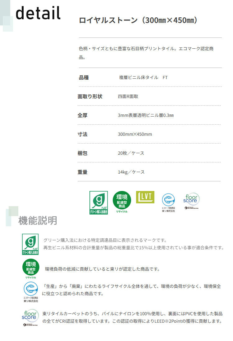 東リ 塩ビタイル ロイヤルストーン (300mm×450mm) ケース(20枚) FT 300mm×450mm