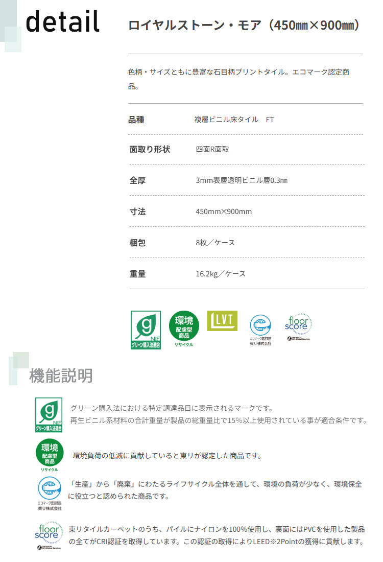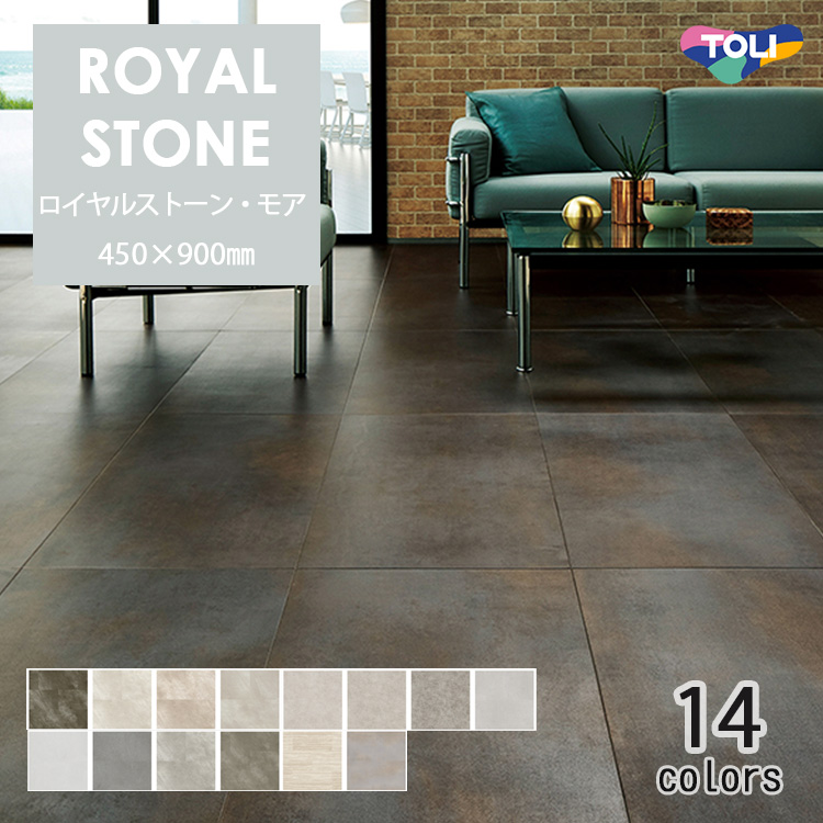 東リ ロイヤルストーンモア (450mm×900mm) 8枚/ケース 複層ビニル床タイル FT 色柄サイズともに豊富な石目柄プリントタイル。エコマーク認定商品。