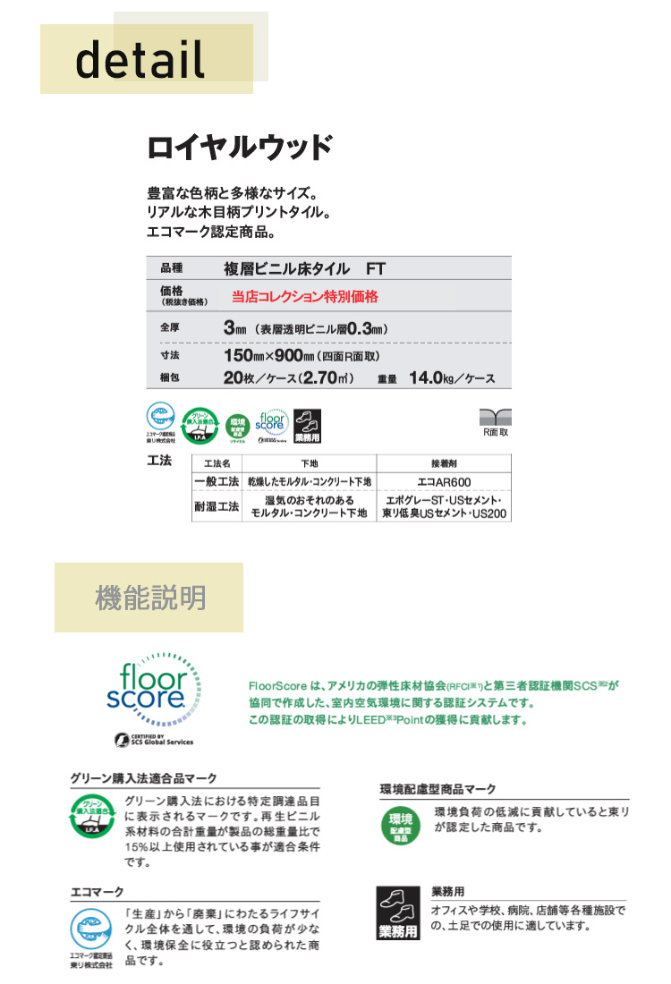 東リ 複層ビニル床タイルFT ロイヤルウッド (150mm幅) ケース(20枚) 150mm×900mm豊富な色柄と多様なサイズ。リアルな木目柄プリントタイル。エコマーク認定商品。 [pwt4201_4307_150mm]
