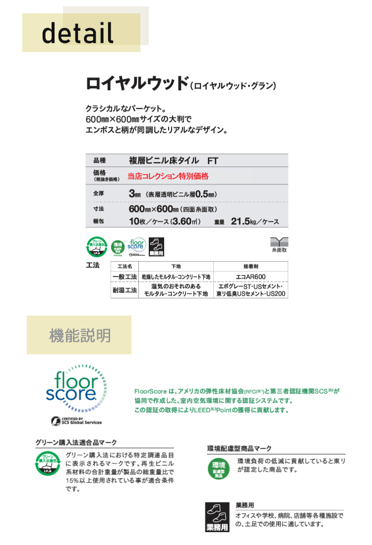 東リ 複層ビニル床タイル ロイヤルウッド・グラン