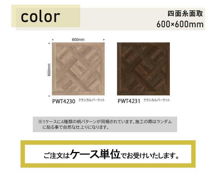 東リ 複層ビニル床タイル ロイヤルウッド・グラン ケース(10枚)600mm×600mm(四面糸面取)クラシカルパーケット [pwt3290-3291]
