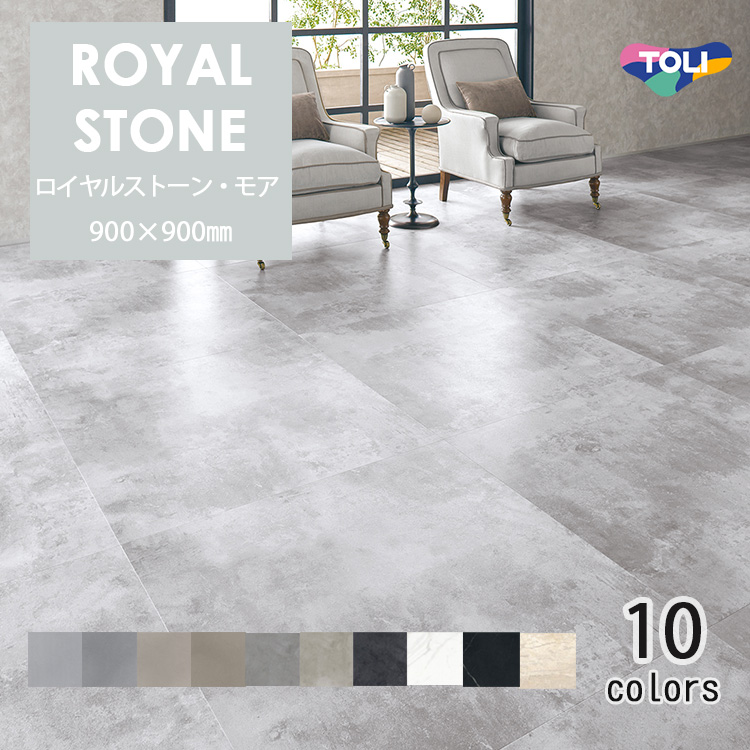 東リ ロイヤルストーンモア (900mm×900mm) 4枚/ケース 複層ビニル床タイル FT (四面R面取)色柄サイズともに豊富な石目柄プリントタイル。エコマーク認定商品。