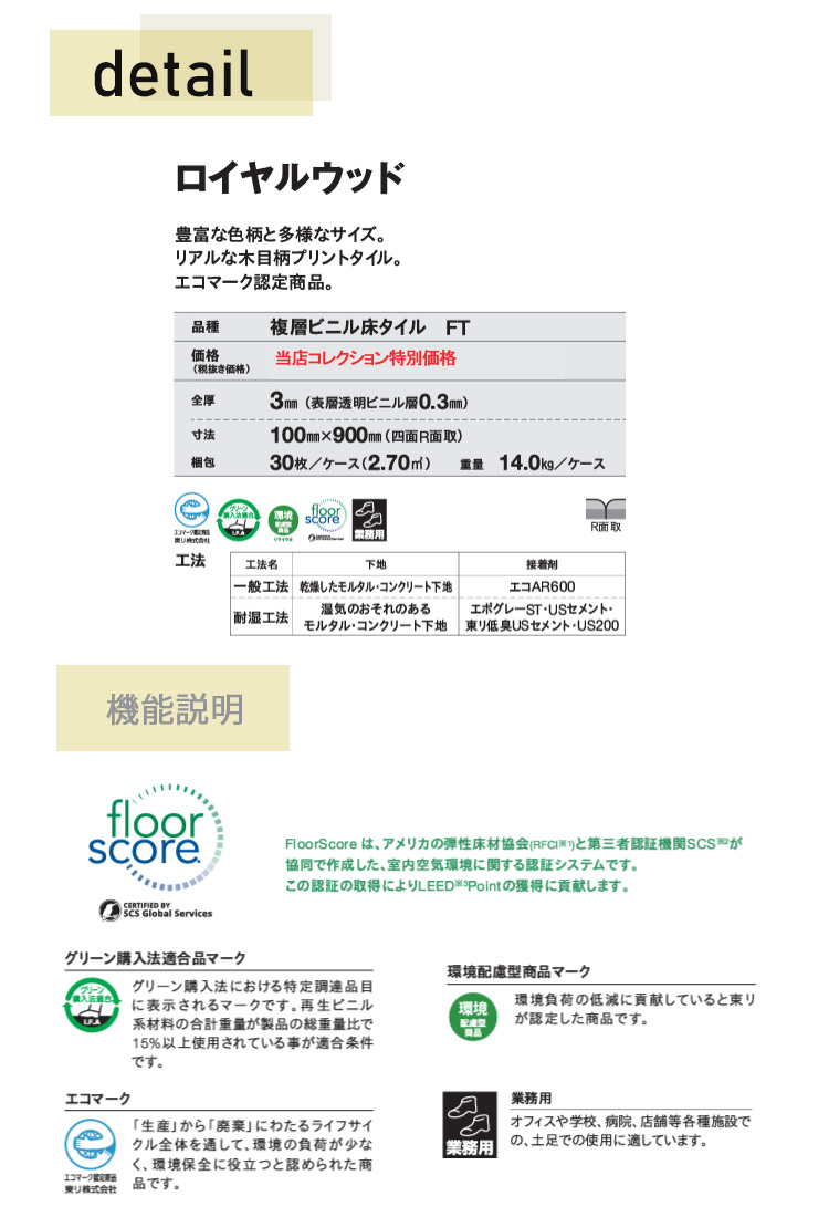 東リ 複層ビニル床タイルFT ロイヤルウッド (100mm幅) ケース(30枚) 100mm×900mm豊富な色柄と多様なサイズ。リアルな木目柄プリントタイル。エコマーク認定商品。 [pwt4268-pwt4275]