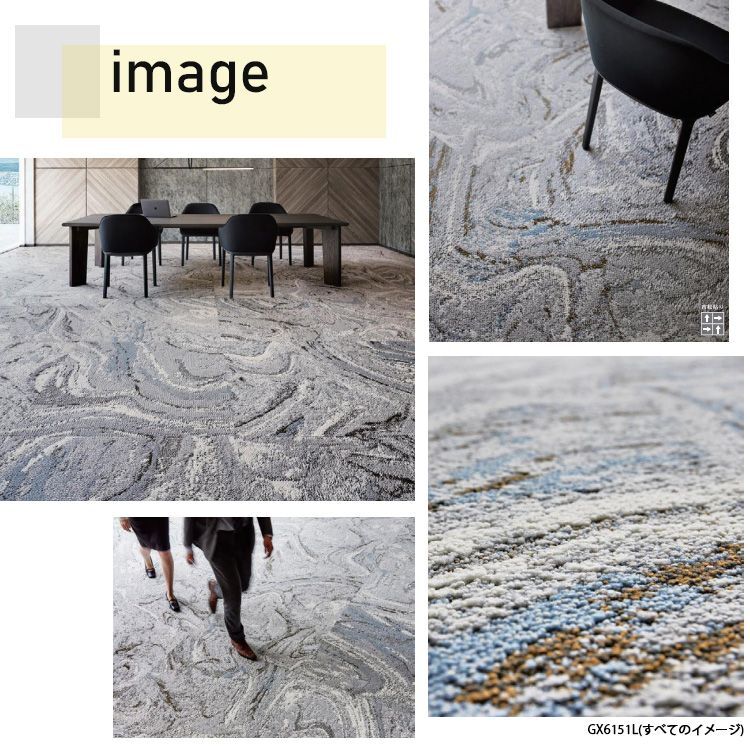 東リグランフロー タイルカーペットGX-6150L 100cm×100cm 空間に広がりを演出する1000mm×1000mmのダイナミックなデザイン。マーブリング技法の雄大な流れを表現しました。 [gx6150l]