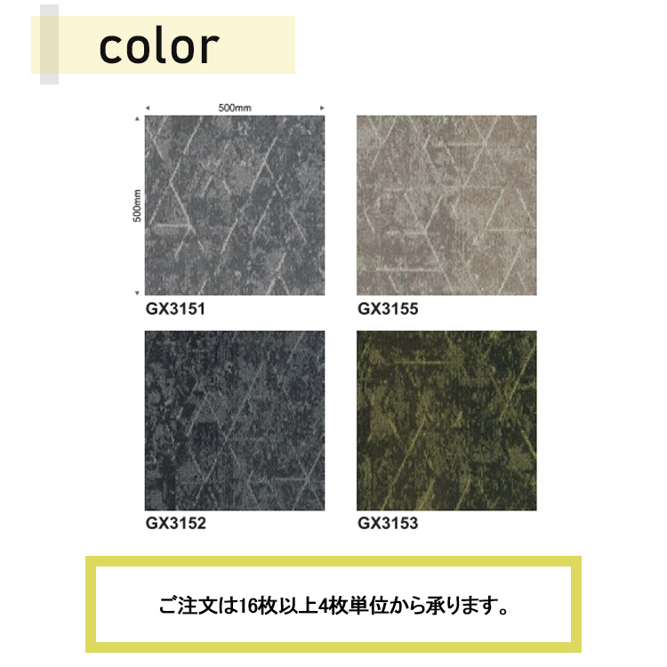 東リ ヘイズピーク タイルカーペット GX-3150 50cm×50cm 自然を想起させる質感と色彩に、直線のパターンを組み合わせたデザイン。